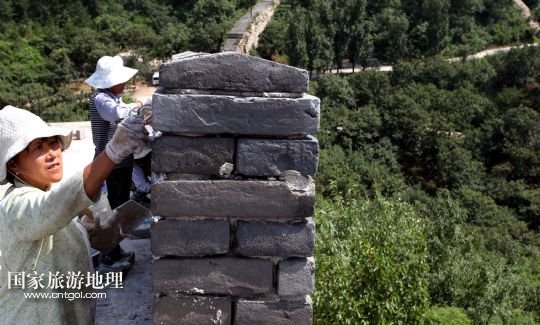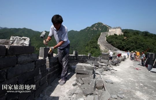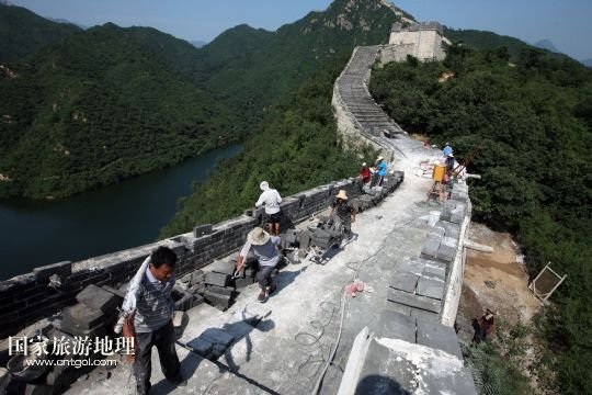 國家旅游地理 北京8月5日訊 8月4日下午,施工人員在北京懷柔西水峪古長城進(jìn)行修繕。西水峪古長城始建于明代,此次修繕部分總長960米,在嚴(yán)格保障結(jié)構(gòu)安全以及原有風(fēng)貌的前提下進(jìn)行恢復(fù)性修繕,修繕后將達(dá)到對(duì)游客開放攀登的標(biāo)準(zhǔn)。預(yù)計(jì)修繕工程將于今年10月底完成,屆時(shí)經(jīng)過專業(yè)部門驗(yàn)收后有望對(duì)外開放。 /新華社發(fā)(卜向東 攝)